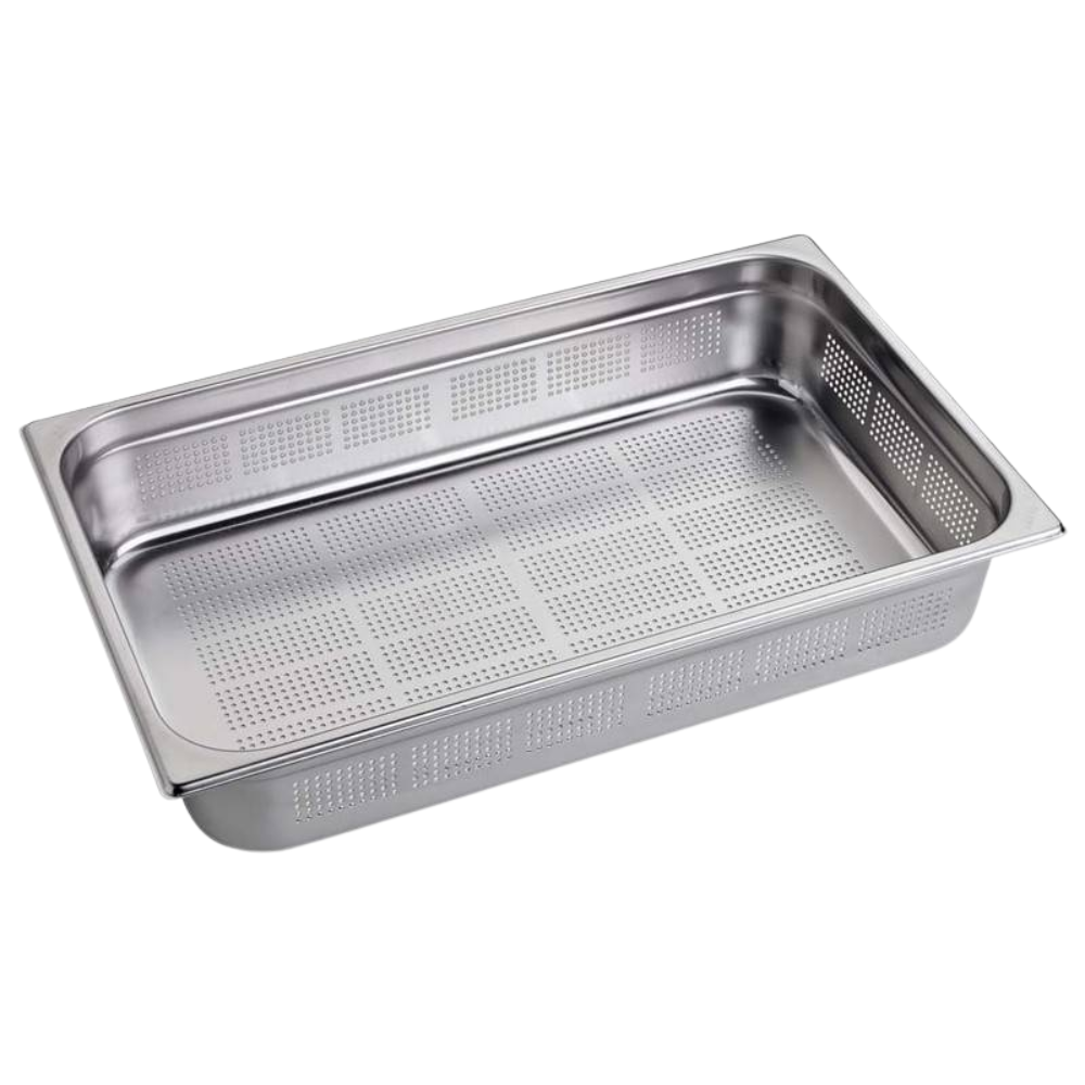 Per aiutarti a selezionare il prodotto più adatto alle tue esigenze, ecco un esempio delle caratteristiche tecniche offerte dalla nostra linea. Di seguito analizziamo nello specifico il modello Bacinella gastronorm Inox Forata GN1/3 H100mm.